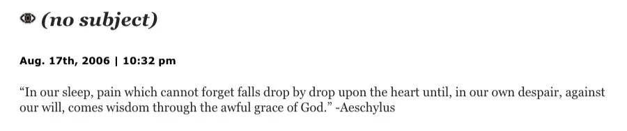 (A)ll of yesterday was in my eyes as a derogatory means of salvation, (as a pitiful jolt of the human condition) as a plea to the conclusion of this exclamatory way of existence ( as an end to this constant thinking) that is so riden of the logic of men and ideals of utopias filled with MEN filled to the top with men and their logic of ethics and the simplicity that is now left to the machine to execute ... and we grow slow. All of this was in my eye yesterday on the left and on the right because i own 2 of them but they see as if i had only one. Only one. And i grow worried for you, totally weary that you may have to read something this mad and condemn yourself with the responsibility of knowing.
